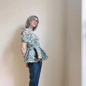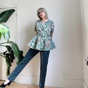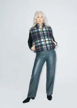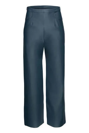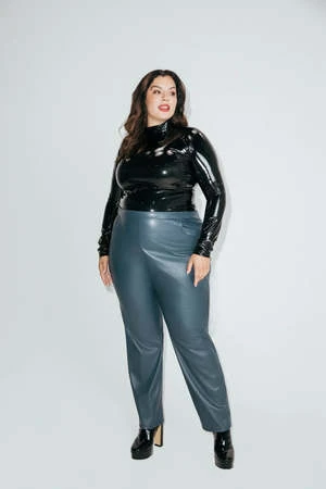 The vegan leather trousers by Hilary MacMillan are a high waisted pant featuring a subtle flair at the leg. They have a hidden side zipper closure and of course-pockets! These trousers are the perfect pair of ‘going out’ pants. Pair them with a oversized button up blouse or a simple fitted turtleneck for a special but easy night out!
