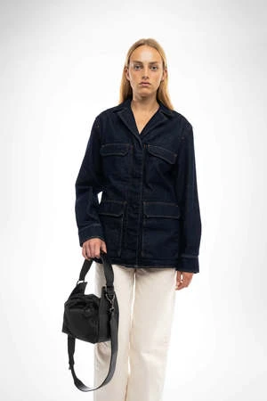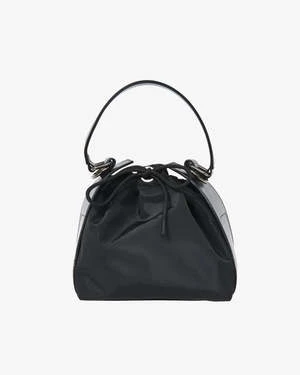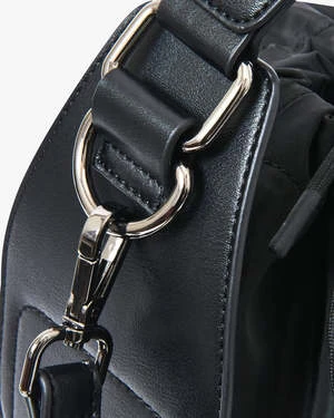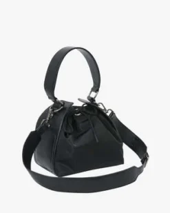 Small shoulder bag with drawstring closure and a magnetic fastener. It contains one main compartment with one inner zip pocket. It includes a long attachable adjustable strap.