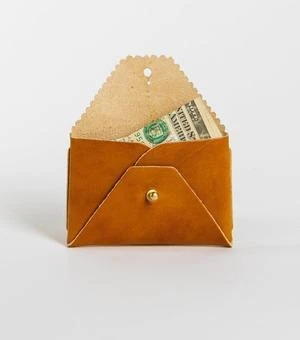 The Essentials Wallet is a small leather envelope with a credit card pocket on the backside. It will fit several credit cards and dollar bills and is easily tucked into your pocket or bag. Each is made from Italian vegetable-tanned leather.