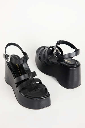 REENA, our fave platform sandal combines monochromatic chicness with a modern tubular upper that flatters the foot and creates an interesting effect on the foot.