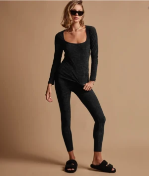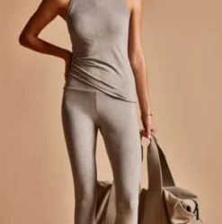 The Stretch Velvet Legging is made in soft, supple, and luxe velvet knit fabric. Style details include a mid rise, wide waistband. Pieced dyed for a dressier look. Fitted.