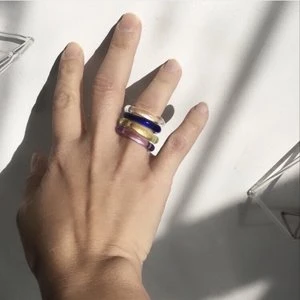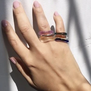 Lilac pink glass organic ring with tiny little bubbles. Every ring is unique in its slight variation in shape. This ring is fun to stack with other bands.