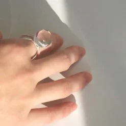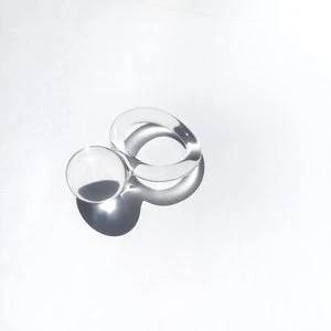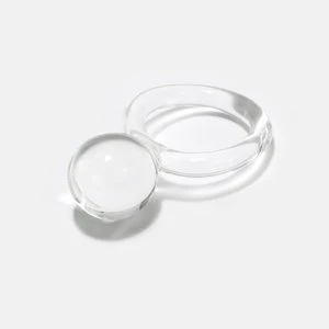 Glass ball ring with clear band and clear orb ball.