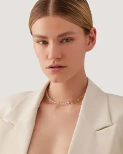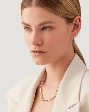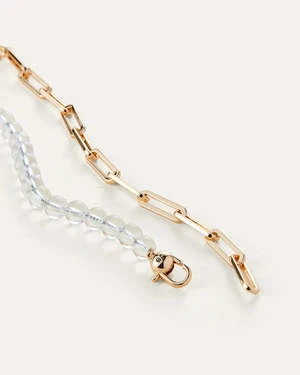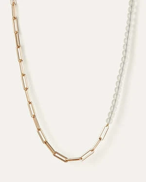 Clear, recycled glass beads contrast elongated paper clip links for a modern take on a chain necklace. Finished in high-polish gold.