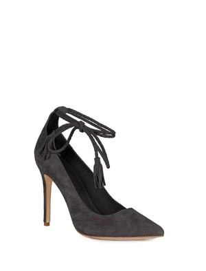 A classic pump with modern appeal. The Angelynn pumps from Joie feature luxe charcoal suede and braided ankle straps with fringe detailing.