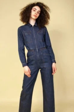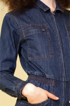 Our best selling classic fitted boilersuit now in denim. Elasticated at the waist with wide, straight legs. Comes in indigo with contrast terracotta stitching.