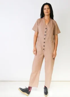 Our best selling classic fitted boilersuit now in denim. Elasticated at the waist with wide, straight legs. Comes in indigo with contrast terracotta stitching.