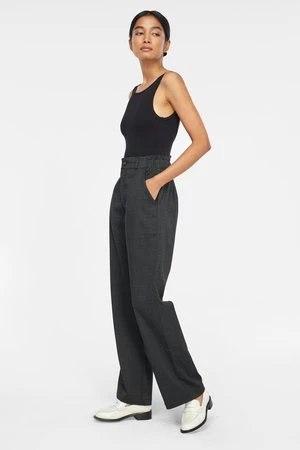Menswear inspired trousers made responsibly from deadstock suiting fabric. High waist, full straight leg with elastic inserts at sides for added comfort.