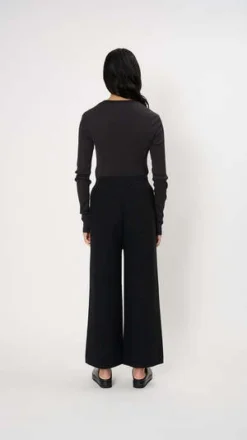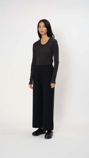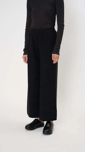The Double Knit Pants have a wide-leg silhouette. It has a softly felted, smooth matte finish with an elastic waistband.