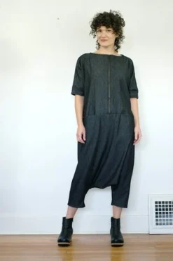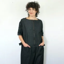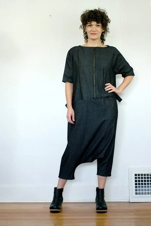 Denim jumpsuit with a zipper closure and roomy pockets. D rings at the side allow you to slightly adjust the fit.