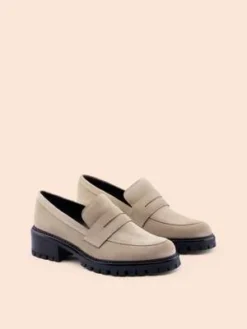 Handmade in Fornos, Portugal. Tried and true, these classic penny loafers never disappoint. With their thick outsole and flattering fit, they will surely make a statement in your wardrobe.
