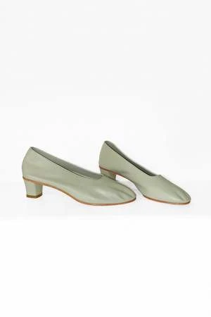 Slip-on pump with signature high vamp and 1.8 inch heel. 100% unlined kid leather upper and leather outer sole. Handmade in Argentina. Fits true to size.