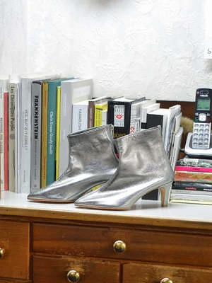 All of Martiniano’s styles reference (and feel like) the classic ballet slipper. The Party Boot is no different, despite the pointy toe and kitten heel. You still get that graceful, minimal feel. Rear zip closure. Strong, but thin and flexible leather outsole. 2″ heel.