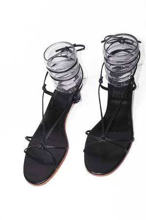 A sandal with laces and 1.8 inch heel. Kid leather upper. Made in Argentina.