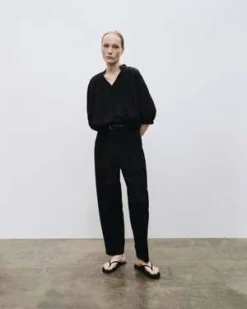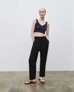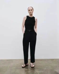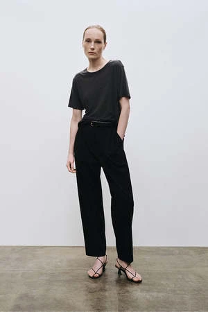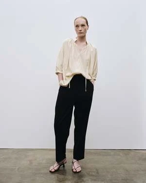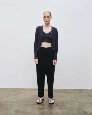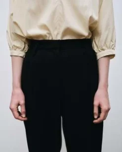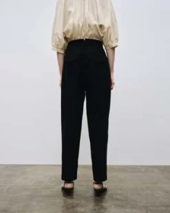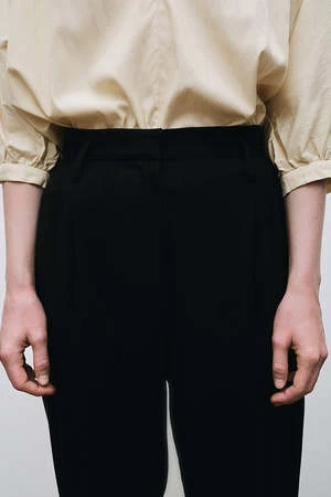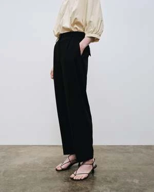 Mijeong Park pleated suit pant in black. Cut for a slightly loose fit. Hook and bar closure.
