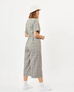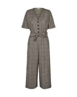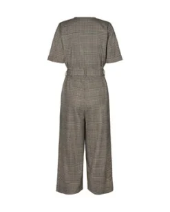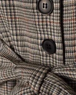 Mono largo de cuadros con manga corta con ajuste en cintura mediante cinturn.