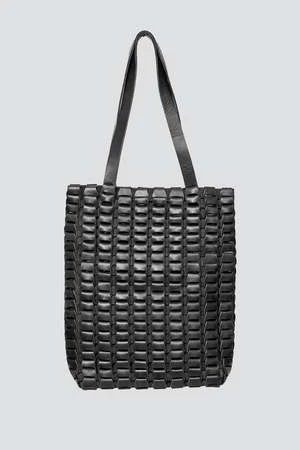 Black Basket Bag Tote from Assembly New York in collaboration with Nimes. Smooth vegetable tanned leather bag. Construction with no stitching. Snap closure.