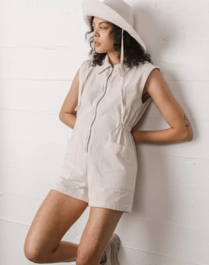The one-and-done Sleeveless Utility Romper you’re going to want to rock all spring and summer. Made out of our signature 100% organic pima cotton canvas that is soft and durable. Featuring a quick and easy zipper on the front and two front pockets to carry your essentials. Style on its own or layer with a sweater.