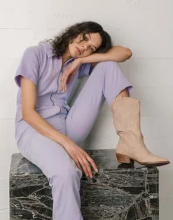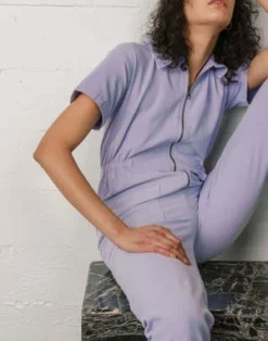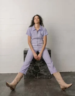 Our signature Utility Suit in Lavender is the one-and-done outfit you will want to make your new uniform. Made in Peru with our durable yet buttery soft GOTS-certified organic Pima cotton canvas. Featuring a chunky metal zipper, cropped leg, and cinched waist.