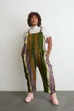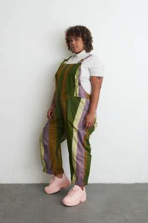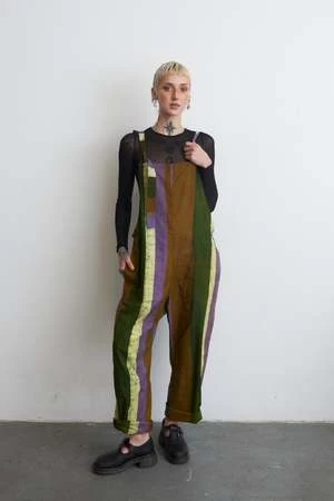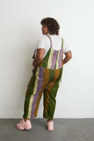 Extra comfy loose-fitting cotton overalls that have a relaxed fit and tie straps for easy adjustment. Plus in-seam pockets. The torso is nice and roomy and the legs have a slight taper. A great all-weather layer.