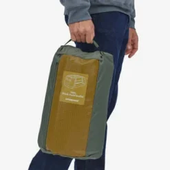– Large opening to main compartment, zippered side pocket, mesh pockets in lid; stuffs into its own pocket for easy storage