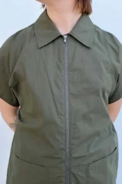 The Barrie Jumpsuit is a versatile, zip-front style, with a boxy cut that is comfortable and flattering. Subtle workwear details make it easy to dress up and down. We recommend sizing down one size for a more fitted look.