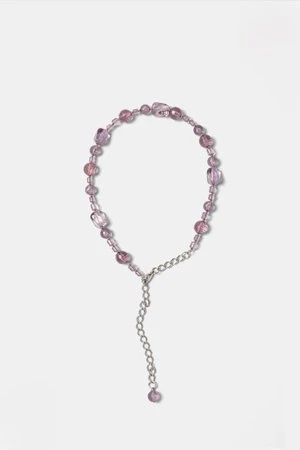 Acrylic bead choker with adjustable chain link fastener.