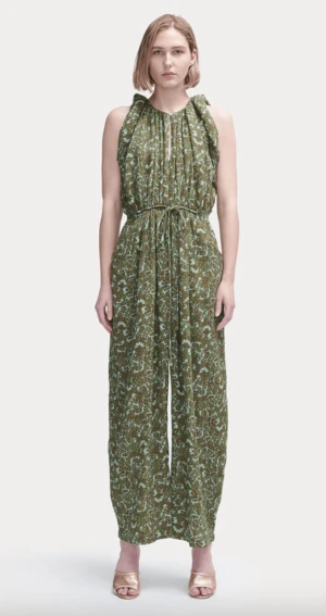 The Valencia Jumpsuit is perfect for any getaway. This new style features a rolled-up sleeve, fixed waist cord tie belt, and drop crotch balloon pant with ankle ties, all crafted from a unique floral print double gauze fabric for an airy, comfortable feel. With deep armholes for maximum breathability, it’s the perfect piece for the summer season.