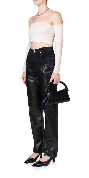 Reike Nen’s Gareatte bag is a long rectangular baguette bag with a thick top handle.