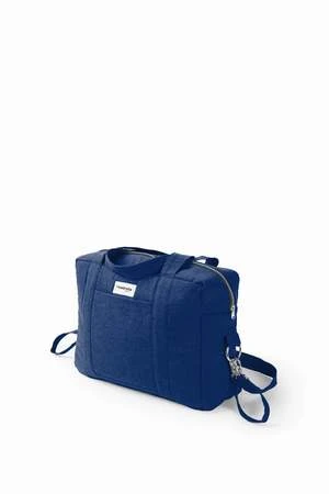 Darcy, the Anti Diaper Bag midnight blue is a diaper bag that doesn’t look like one. You’ll love its timeless style and super-practical features, including a large removable pouch, several pockets (a front patch pocket for your phone, an inside pocket for diapers, and an elasticized pocket for a bottle), a loop that slips over your suitcase, and ties for attaching it to a variety of stroller models. The wide, adjustable strap lets you carry it over the shoulder or messenger style. You’ll take it everywhere, with or without baby.