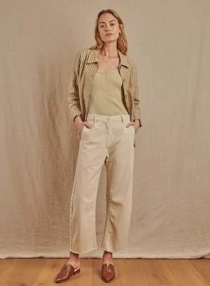 Made from soft, yet structured 10oz Recycled Cotton, the Pilon features a horseshoe leg and raw hem. A chic alternative to skinny jeans.