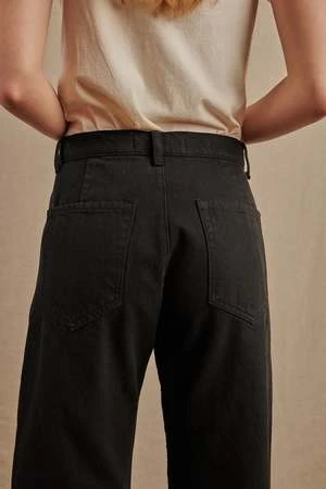 Made from soft, yet structured 10oz Recycled Cotton, the Pilon features a horseshoe leg and raw hem. A chic alternative to skinny jeans.