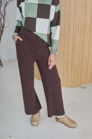 Our staple pant for the season- featuring our 100% cotton ribbed knit with elastic waist, and pockets at side seam.