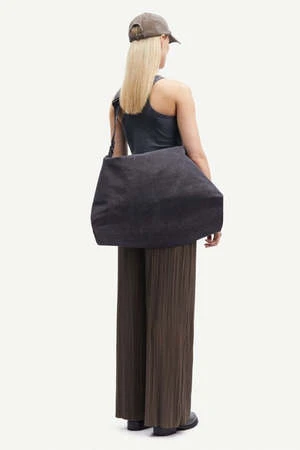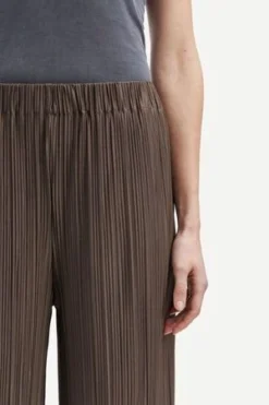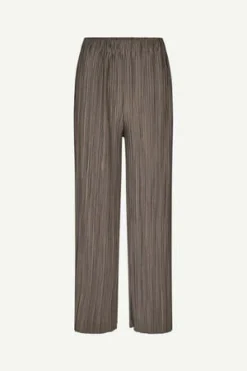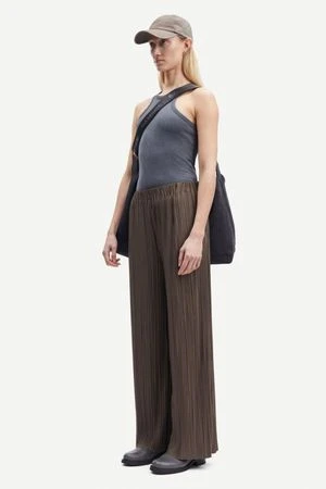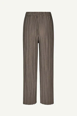 Relaxed fitting wide leg trousers with an elasticated waistband. Side seam pockets. Finely pleated jersey fabric, recycled polyester blend, GRS certified.