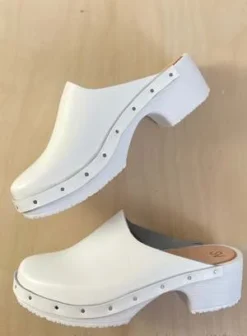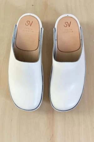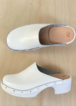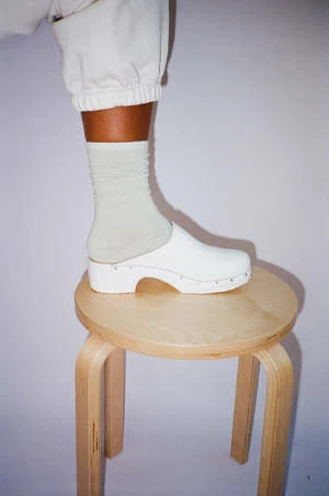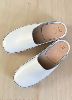 This closed toe clog has a durable cow hide leather upper and a soft wood sole that is coated in rubber for ultimate comfort and wearability. It is made between Sweden and California and is therefore final sale.
