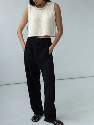 Taking cues from the Shaina Mote best selling Lune Pant cut, the Arc Pant offers a casual, broken in herringbone cotton twill with long leg and subtle balloon shape. Features a seamless side seam cut with panels that wrap around the waist for a super smooth silhouette and fit through the hip. Zipper and hook and bar front entry with both front and back pockets.