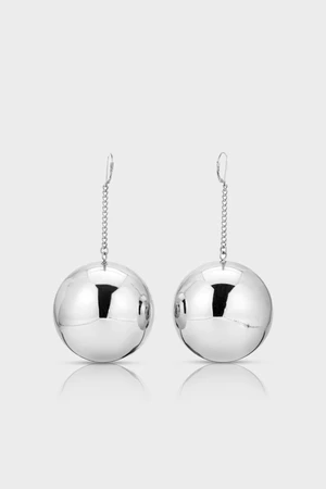 PAIR OF SILVER ALUMINUM DISCO BALL DROP EARRINGS.