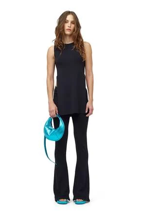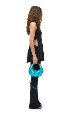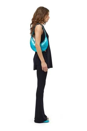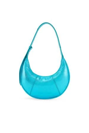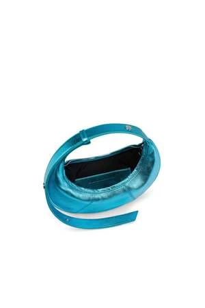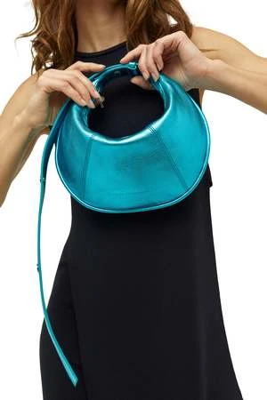 Mini leather curved shoulder bag with adjustable leather strap and zipper closure. 3 bags in 1, a hand bag, a shoulder bag, and a tote bag.