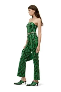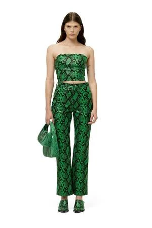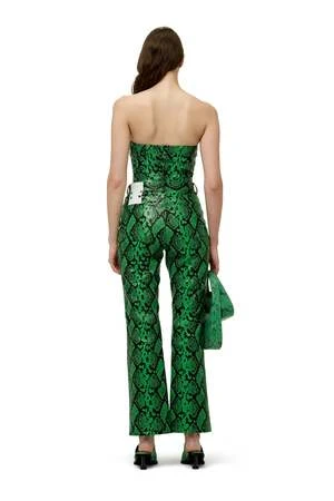 Vegan leather high-waisted straight cropped trouser. A twist to a classic fit. Button fly and logo patch on left back.