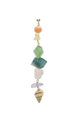 Agate, quartz, pearl, mother of pearl, shell. 14K gold-fill post. 5.25 inches long.