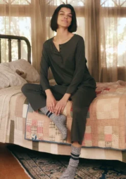 Crafted from supersoft jersey, The Lounge Crop has a drop rise and pockets for added ease and comfort. Match the bottoms back to The Sleep Henley for the ultimate cozy