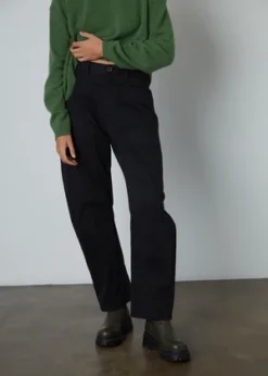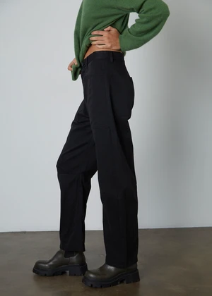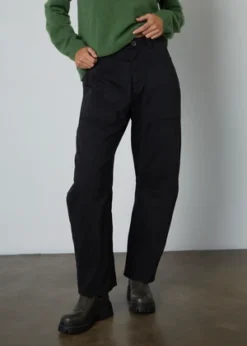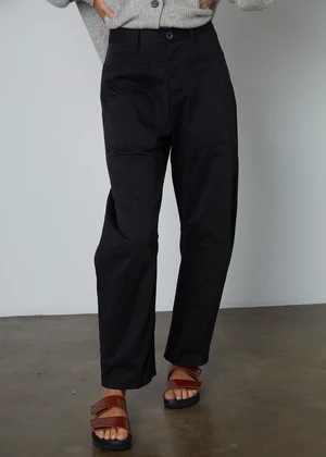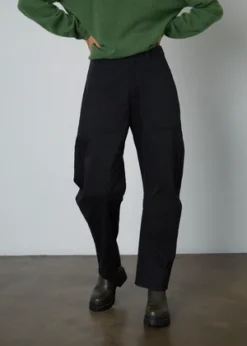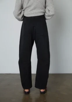 The Brylie twill pant is the perfect complement to your favourite ankle boots. Features oversized front and back patch pockets and a “barrel” leg silhouette.