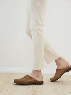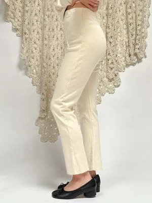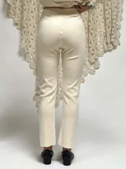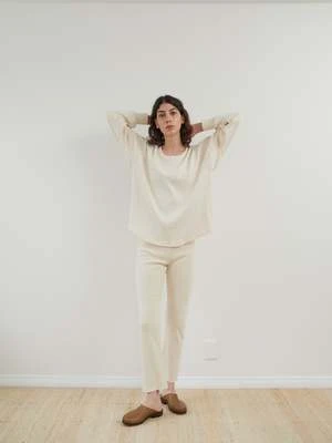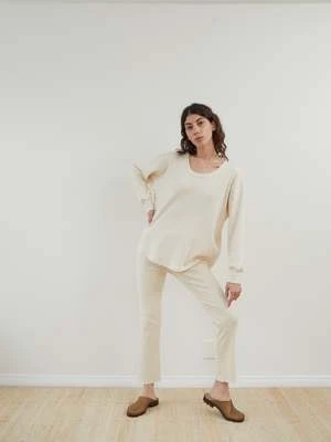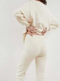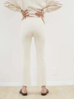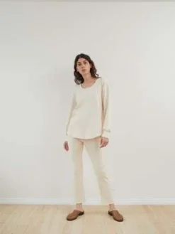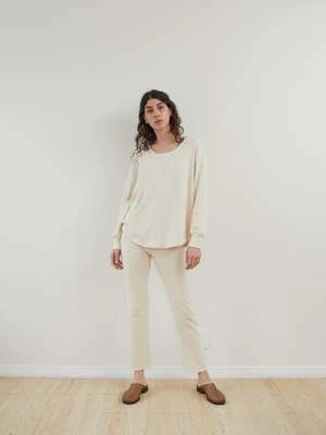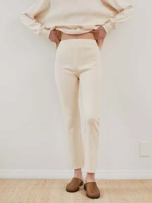 Slim and fitted legging with more of a straight leg at the ankle. Elastic waist and a raw edge hem. These are stretchy from the rib stitch of the fabric, there is no lycra in the fabric. Done in Wol Hide’s 100% USA grown and sewn organic cotton heavyweight rib, these have a substantial feel and a good amount of stretch.