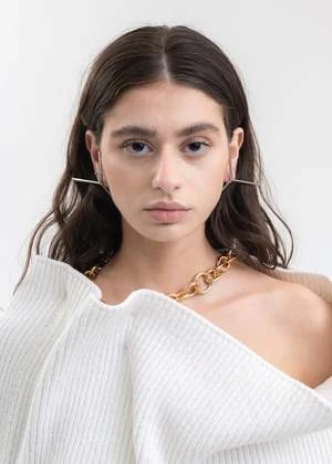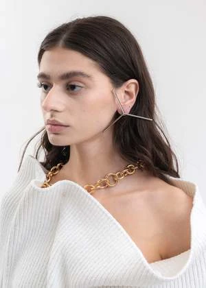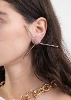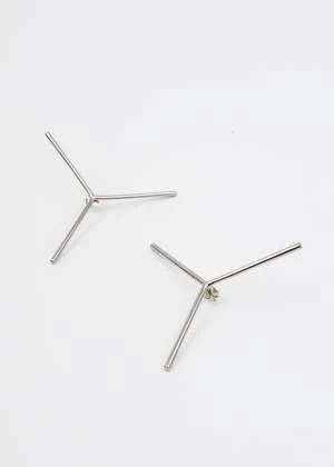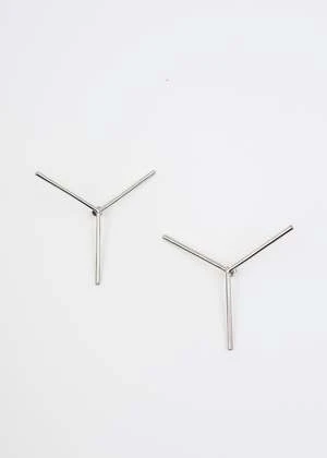 Maxi Y single earring in silver, from Y-Project. Features a segmented Y-logo motif construction with tonal post-stud closure.