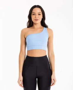 Ribbed 54 Rib Bra in baby blueby Year Of Ours. Asymmetrical and cropped, the Ribbed 54 Bra is a little disco, a little future for a bra that’s a top in its own right. Split strap back for structural detail. Lined. Made from Spandex Active Rib.