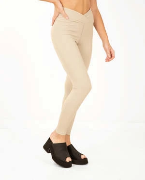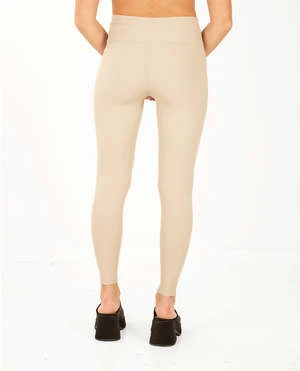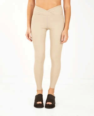 Veronica Ribbed Legging in dune by Year Of Ours. Feautures a form-fitting cross V waist. These leggings accentuate the waistline and hit everywhere else just right. Made with Active Nylon Rib.